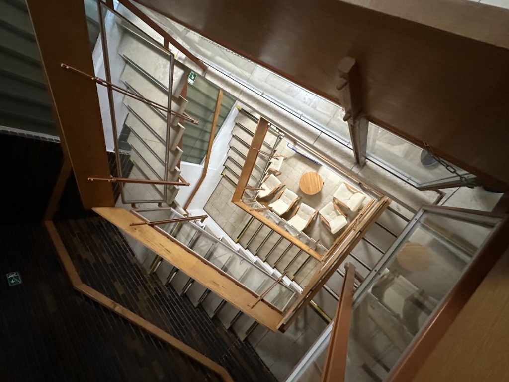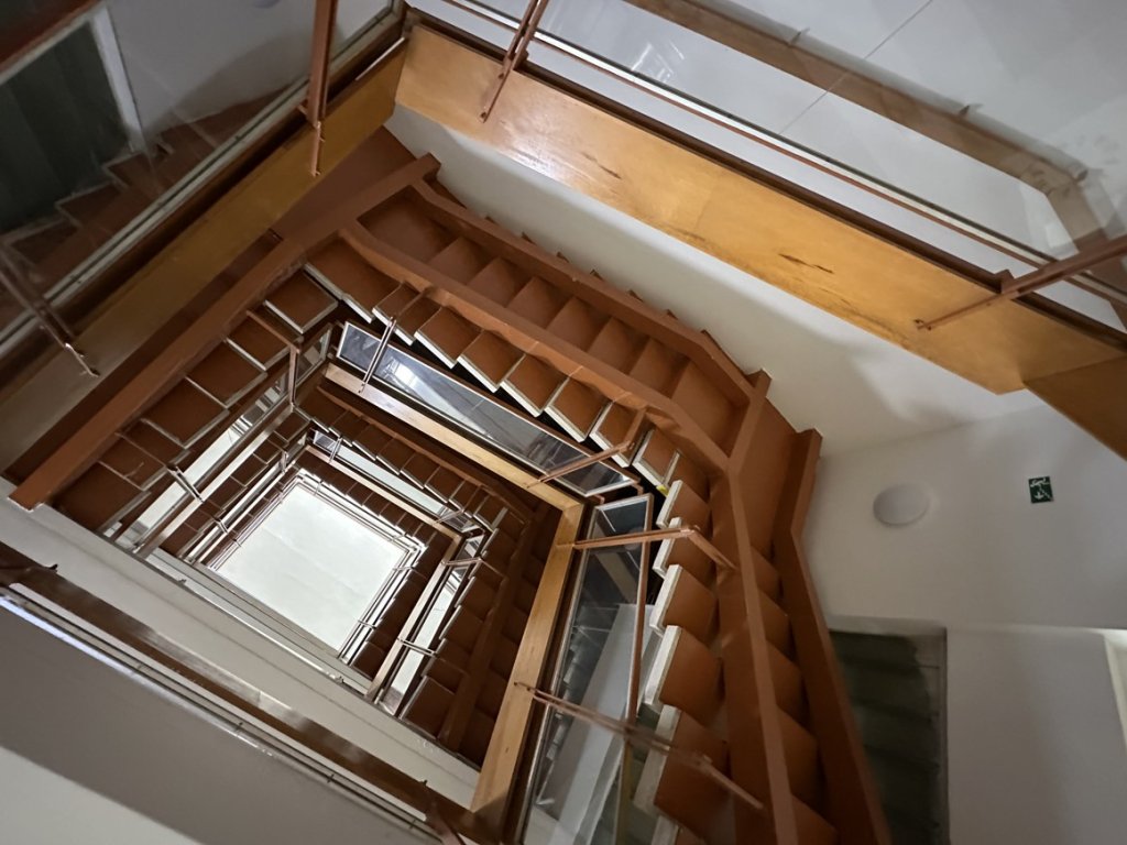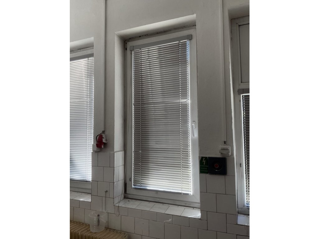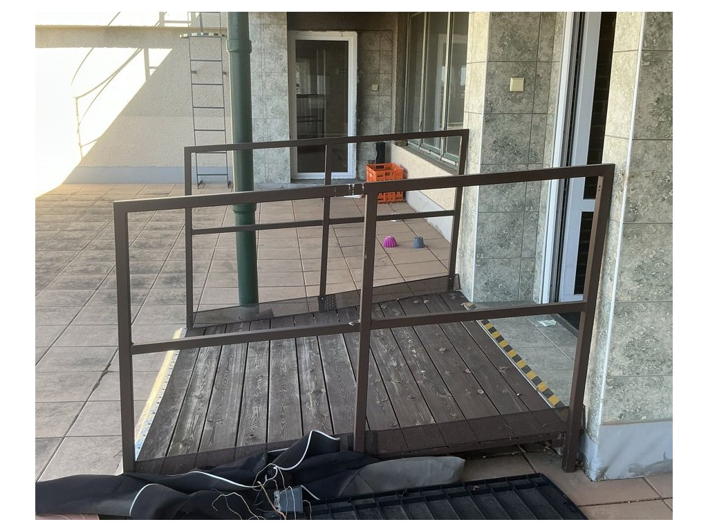 Dveře, nájezd, schodiště, zábradlí, okna s žaluziemi,