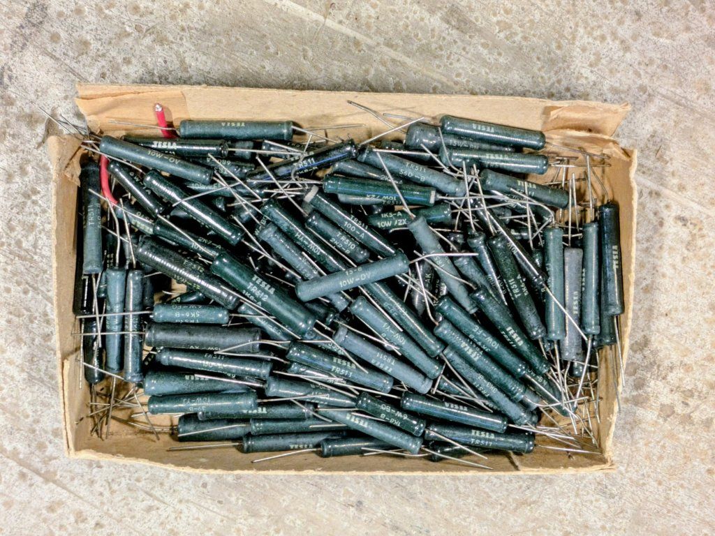 Sada historických drátových rezistorů od československého výrobce Tesla.
