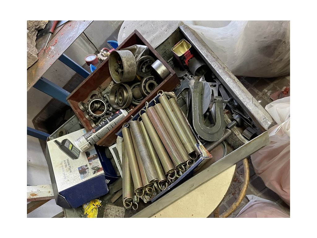 pružiny, ložiska, háky a drobné součástky / cca 60 kg