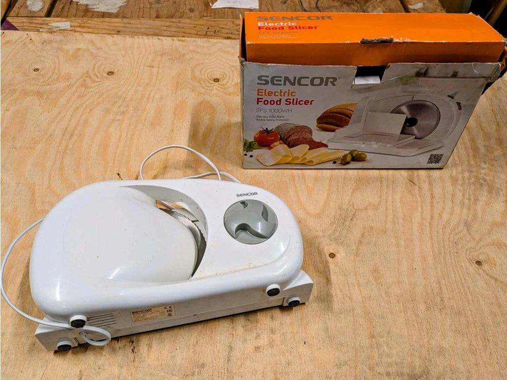 Elektrický kráječ potravin Sencor SFS 1000WH.
