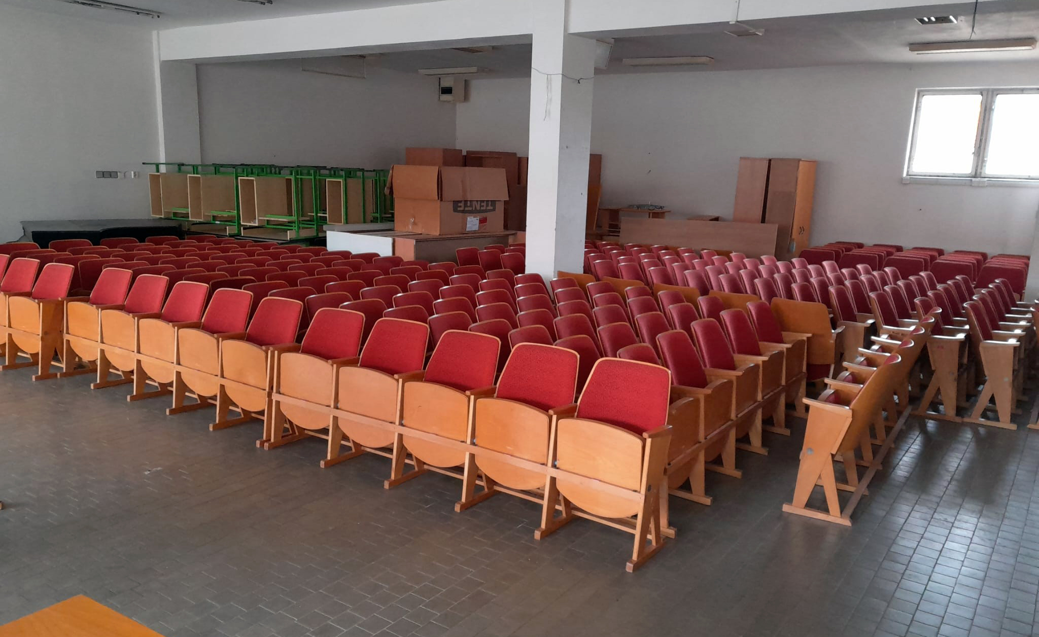 Divadelní sedáky z Bakova nad Jizerou pro ateliéry a kino sál Umprum v Kasárnách Karlín