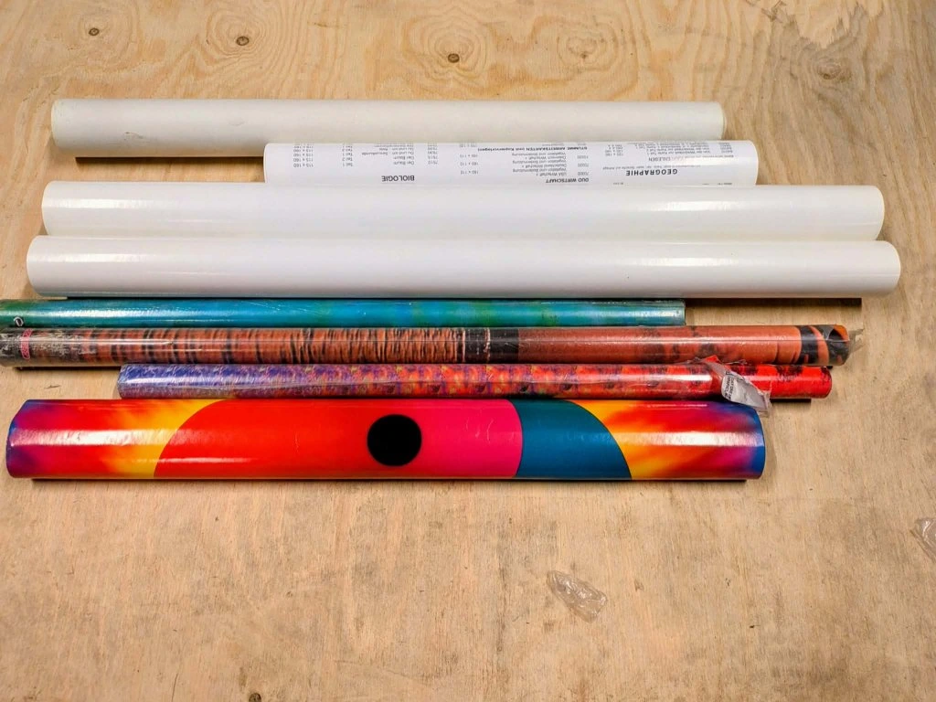 Mix barevně vzorovaných plakátů.