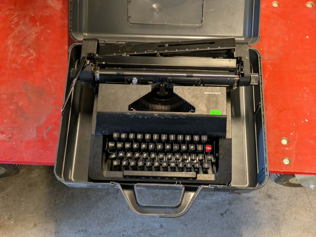 Psací stroj s plastovým kufrem