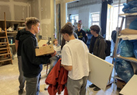 17. září 2025 studenti Estetické výchovy osmiletého gymnázia Duhovka (Praha) - komentovaní prohlídka skladu, debata o recyklaci v kultuře a výběr materiálu pro tvorbu v ateliéru školy.