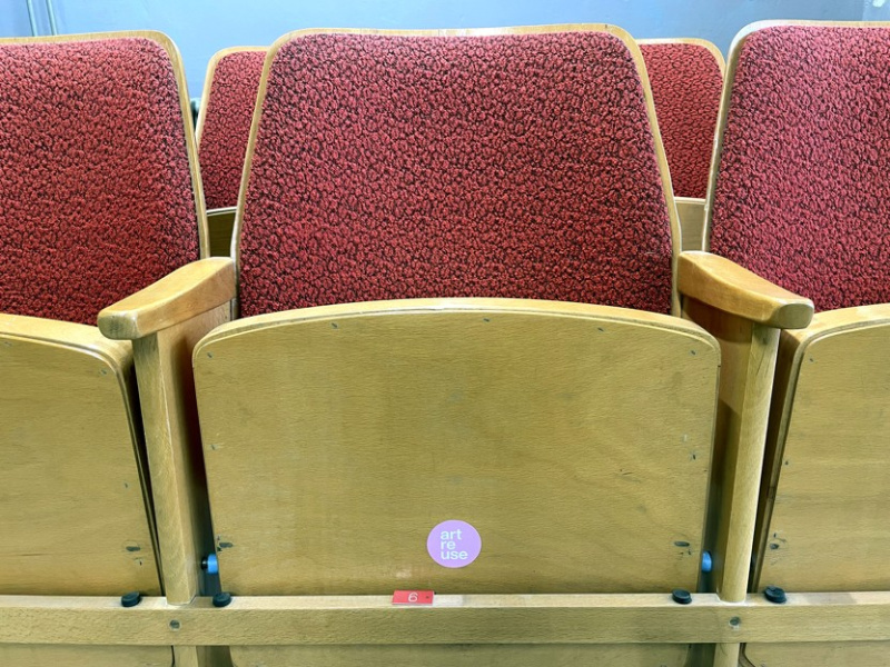 Příklad oborové strategie ekonomické udržitelnosti v praxi: Přebytečný materiál z kulturního provozu jako přímá investice zpět do kultury a umělecké tvorby. Pouze u této jediné položky „kino-sedačky“ byl zachráněn a předán materiál v aktuální bazarové hodnotě stovek tisíc korun.