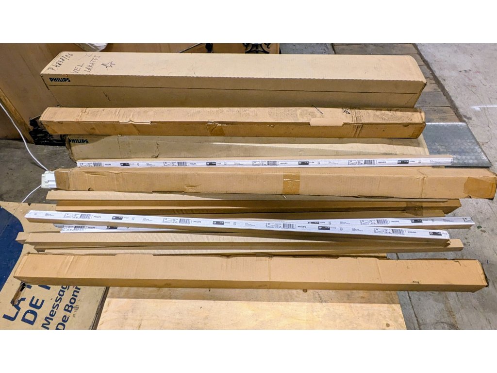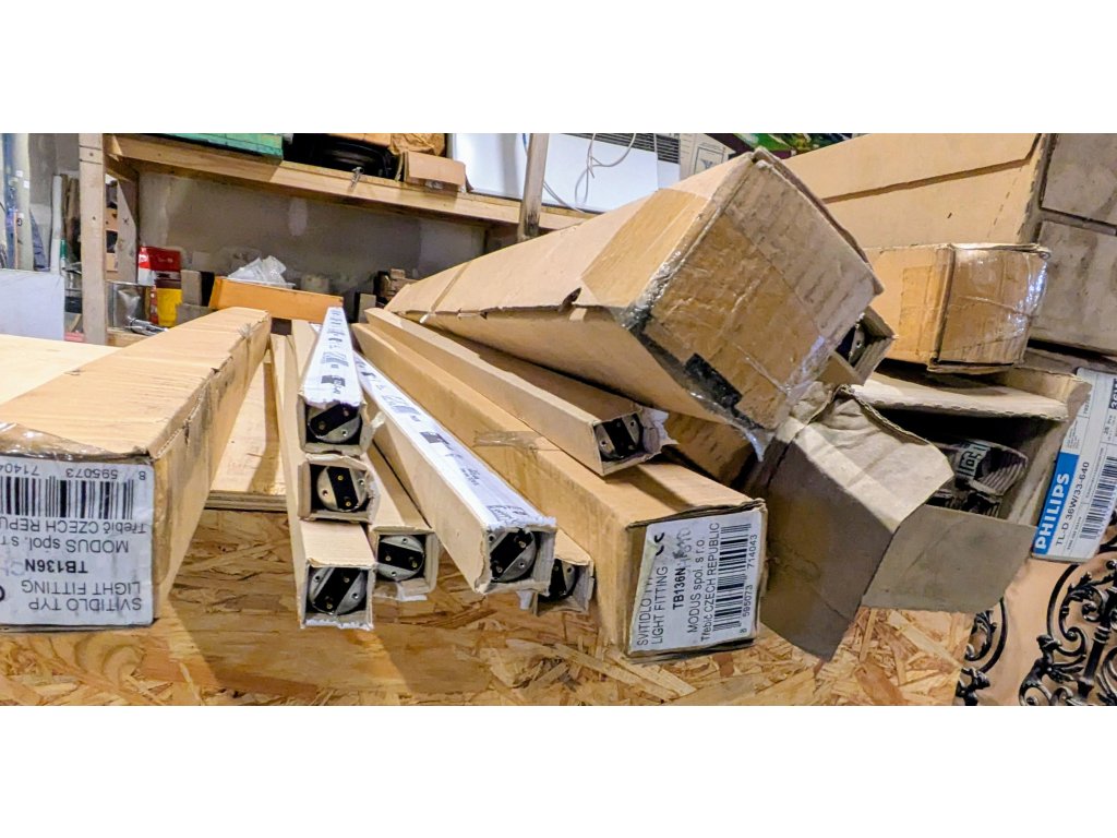 Lineární zářivková tělesa MODUS a zářivkové trubice. Cca 50 ks.